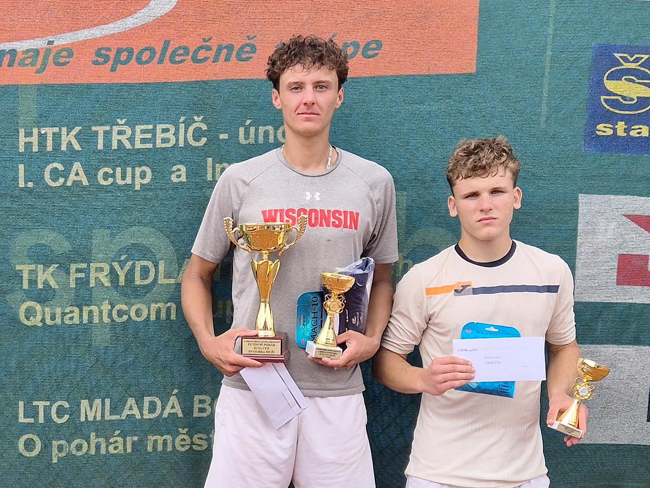 OPTIM TOUR 2025: Tomáš Zlatohlávek a Lenka Munzarová vyhráli Juta cup06.08.2025 Tradiční Juta cup, a tradičně déšť. Ještěže pořadatelé rozšířili hlavní soutěž mužů na 64 hráčů a tím nebyla plná kvalifikace. V pátek totiž pršelo a celá kvalifikace by se rozhodně nestihla odehrát. V sobotu se naopak stihlo vše, co bylo v plánu. Silná horní polovina pavouka u mužů nabídla skvělé zápasy a zejména ve čtyřhrách nebyla nouze o překvapení. Do finále dvouhry nakonec postoupil Tomáš Zlatohlávek (vítěz z Houštky) a po zásluze Jiří Fiala (r.2006). Tomáš dokázal ušetřit síly a ve finále zvítězil i přes velmi náročné čtvrtfinále s Martinem Benešem a semifinále s Vítkem Horákem, kdy v obou zápasech byl k vidění nádherný agresivní tenis plný dlouhých výměn. |