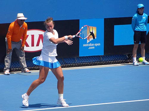 AO 2013: Juniorka Krejčíková je ve 3.kole21.01.2013 Z dnešních zápasů českých juniorů zasáhla do boje pouze Krejčíková. Ta během dvou týdnů již podruhé porazila mladou nadějnou Ukrajinku Olgu Fridman (1998) 6:4 6:3. První set se nevyvíjel příznivě a nabuzená soupeřka hned získala vedení o dva gamy. Krejčíková nakonec s taktikou důraznějších úderů srovnala skóre na 4:4 v prvním setu a poté častěji chybující Fridman vykazila zbytek prvního setu. Ve druhém setu už Krejčíková diktovala tempo hry. Hrálo se ve větším větru a zvláště na straně proti větru to bylo dost obtížné. Zítra hraje Kateřina Siniaková a Robin Staněk 2. kolo. Odpoledne jsou na programu čtyřhry. Ukrajinku Fridman jsme mohli vidět v roce 2012 v Plzni, kde vyhrála mistrovství Evropy do 14 let. |
