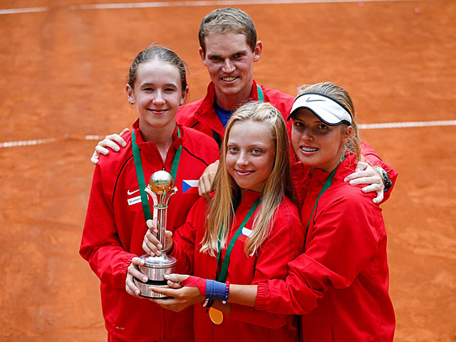 Titul juniorských Mistryň světa družstev 2019 získaly české hráčky. Trio Linda Fruhvirtová (2005, ITF 22), Nikola Bartůňková (2006, ITF 681) a Brenda Fruhvirtová (2007) ovládly domácí šampionát v Prostějově, když ve finále porazily celek USA 2:0 po dvouhrách. Nejprve Brenda Fruhvirtová zdolala Tsehay Driscoll 7:5 6:4, její starší sestra a týmová jednička Linda potom smetla z kurtu americkou jedničku Clervie Ngounoue 6:0 6:1 za necelou hodinu. Po 16-ti letech se tak titul světových šampionek vrací do České Republiky. Čeští junioři ve složení Vojtěch Petr (2005), Lukáš Velík (2005) a Jakub Menšík (2005) skončili na konečném třetím místě. V semifinále domácí tým podlehl Francii 1:2, v boji o bronz pak ale porazil Chorvatsko 2:1, když o vítězství rozhodovala čtyřhra. Výsledky. 10.08.2019 |