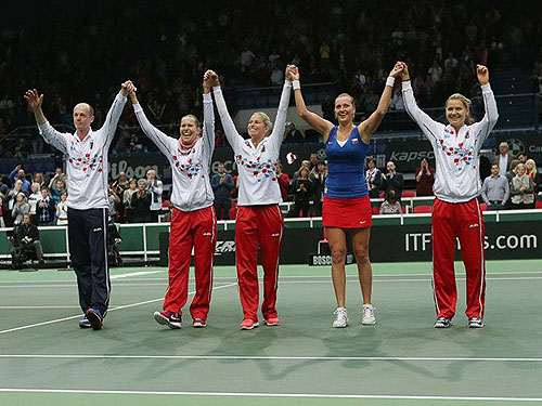 Fed Cup 2013: Češky postoupily do semifinále, Kvitová zdolala Stosur10.02.2013 Rozhodující třetí bod v utkání proti Austrálii zařídila v neděli v Ostravské ČEZ aréně Petra Kvitová. Česká jednička utekla v dramatickém utkání z mečbolu a zdolala Samanthu Stosur 2:6 7:6(3) 6:4. Konečný stav 4:0 pro obhájkyně titulu dokonal pár Hlaváčková, Hradecká v závěrečné čtyřhře. Český fedcupový tým |