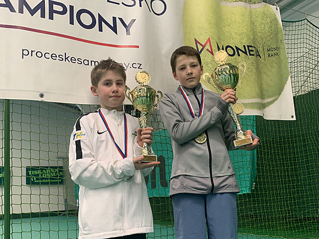 Halovými Mistry ČR v kategorii mladšího žactva se stali Jan Kumstát (2007, TK AGROFERT Prostějov) a Marie Slaměníková (2007, TK AGROFERT Prostějov). Kumstát ve finále v Jablonci v souboji dvou nejvýše nasazených porazil Maxima Mrvu (2007, TK AGROFERT Prostějov) 6:3 6:3. Turnajová jednička Slaměníková si ve finále na Spartě poradila s Alenou Kovačkovou (2008, TK Sparta Praha) 6:1 6:4. Výsledky žáci. Výsledky žákyně. 05.02.2019 |