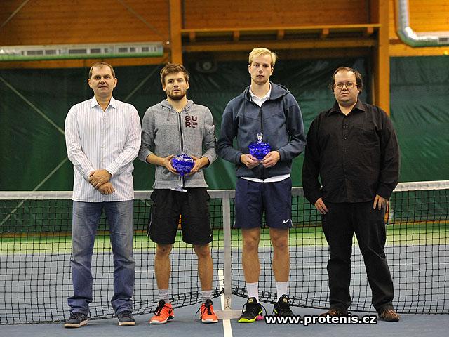 Soutěž čtyřhry na mezinárodním turnaji mužů dotovaném $10,000 vyhrál český pár Vocel, Papík, který ve finále porazil holandskou dvojici Lootsma, Van de Zandschulp 6:3, 1:6, 10:4. Ve finále dvouhry se v sobotu od 10:30 hod. utká Marek Jaloviec a Van de Zandschulp. Výsledky. 25.11.2016 |