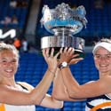 Konečně je titul náš! slaví Krejčíková se Siniakovou. Rozhodl lob à la Vysoké Tatry Dokázaly to! Barbora Krejčíková s Kateřinou Siniakovou konečně dobyly titul z Australian Open, který jim tak dlouho odolával. „Potom, co jsme loni prohrály ve finále, máme velkou radost, že konečně máme titul,“ radovala se Siniaková. Na vytouženou trofej české duo dosáhlo poté, co v 2 hodiny a 44 minut dlouhé finálové řeži přetlačilo Annu Danilinovou a Beatriz Haddad Maiaovou po setech 6:7(3), 6:4 a 6:4.