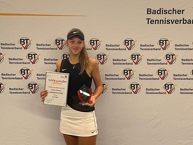 Krejčová vyhrála turnaj ITF J5 v Německu14.11.2022 Tereza Krejčová (2008, ITF 1073) vyhrála mezinárodní turnaj ITF J5 hráček do 18 let v německém Leimenu. Ve finále porazila Ukrajinku Sofiia Mykhailets (2007, ITF 759) 7:6(3), 6:2. Spolu s Ukrajinkou Polinou Humeniuk došly do finále čtyřhry. |