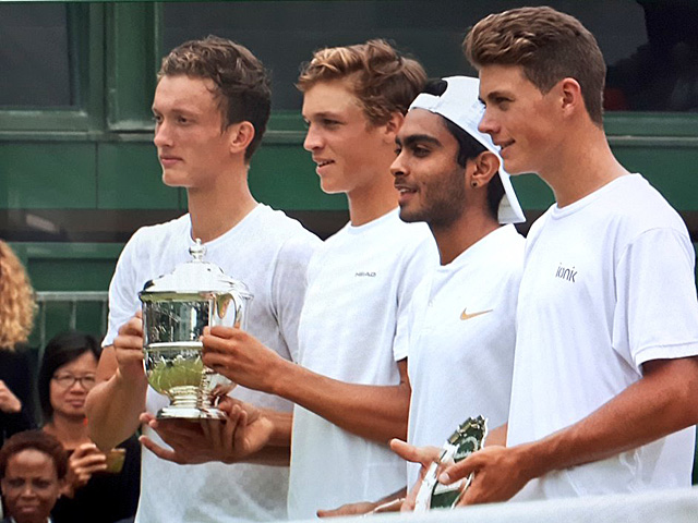 Jonáš Forejtek (2001, ITF 4) a Jiří Lehečka (2001, ITF 33) vyhráli čtyřhru na juniorce Wimbledonu 2019. Ve finále porazili kanadsko-americkou dvojici Draxl/Nanda 7:5, 6:4. Výsledky. |