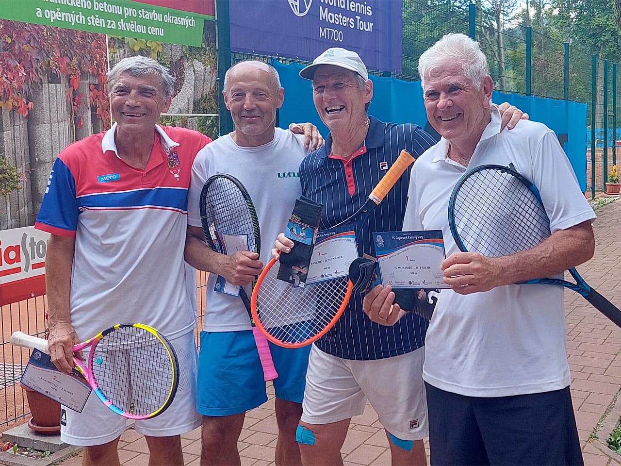 MT700 Karlovy Vary - největší seniorský turnaj v ČR Letos se k účasti v turnaji sjelo přes 120 hráčů a hráček nejen z Evropy, ale i ze vzdálených zemí (USA, Austrálie, Nový Zéland), z toho 14 hráčů a hráček z první světové dvacítky ve svých kategoriích. Z naši zvítězili Nebojsa (45+), Prutyszyn (50+), Suchomel (75+), Mrázová (60+), Sedláčková (65+). Nepřehlédnutelnou osobností mezi účastníky byl Australan Paul McNamee, vynikající deblista (23x vyhrál Grand Slam v deblu a mixu), který stál u zrodu Hopman Cupu a následujících 12 let ho řídil. S přehledem vyhrál svou kategorii 70+ ve dvouhře a s W. Pascoem vyhráli i čtyřhru. Většina hráčů a hráček vyjádřila spokojenost s průběhem a organizací turnaje a mnozí přislíbili účast i v příštím ročníku.