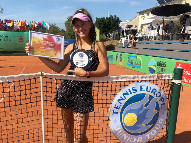 Paštiková vyhrála turnaj Tennis Europe v Německu Julie Paštiková (2008, TE U14 40) vyhrála mezinárodní turnaj Tennis Europe hráček do 14 let v německém Dürenu. Ve finále porazila Němku Zhenikovu (2008, TE U14 225) 6:3, 6:4.
