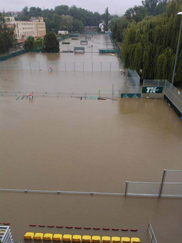 Povodně: Štvanice uzavřena03.06.2013 V pondělí 3. června policie uzavřela vstup na ostrov Štvanice. Pracovníky Českého tenisového svazu můžete nadále kontaktovat e-mailem nebo přes mobilní telefon. Povodně se nevyhnuly ani největším pražským klubům. Na fotografii vidíte situaci na TK Sparta Praha, kde hladina vody je zhruba jeden metr nad úrovní dvorců. |