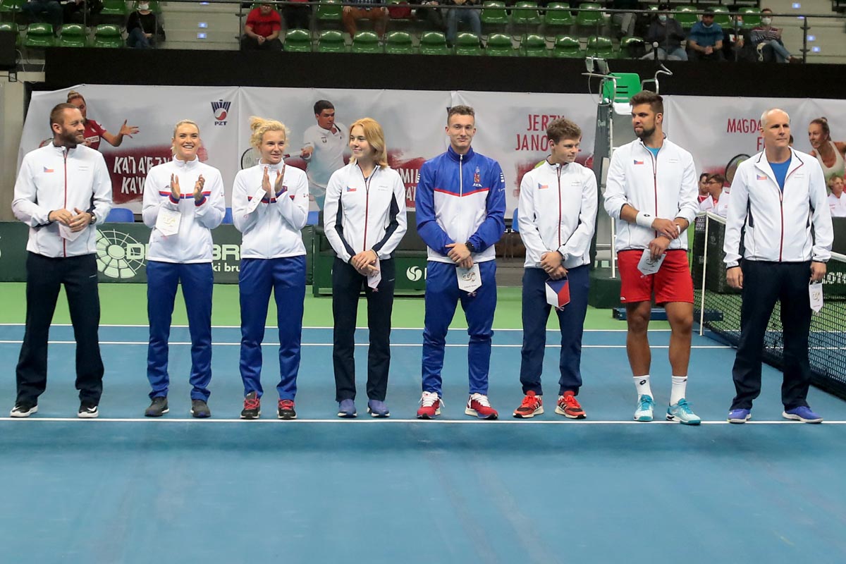 Přátelské utkání Česko-Polsko U příležitosti 100 .výročí Polského tenisu proběhlo v termínu 10.-11.12.21 v Zielonej Goře přátelské utkání obou týmu dospělých.V úžasné atmosféře se z konečného vítězství 4:2 po tuhém boji radoval český tým,který startoval v sestavě Jiří Veselý,Jiří Lehečka,Vojtěch Petr kapitán Dan Vacek,Tereza Martincová,Kateřina Siniaková,Linda Nosková kapitán Tomáš Krupa. Gratulujeme.