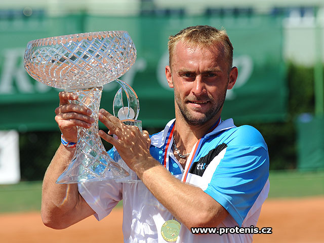 Rieter Cup 2014: Premiérový titul Jebavého04.07.2014 Mužské finále podle očekávání ovládl Roman Jebavý, nasazená jednička mezi muži. Od začátku se snažil vítěz diktovat tempo hry, především z forhendu tlačil soupeře za základní čáru. Zaplněná tribuna často tleskala pěkným výměnám plných razantních úderů. Jebavý (1) – Šáfránek (2) 6:3, 6:3 Esa: 0:0, dvojchyby: 0:0, vyhrané míče: 73:58. Brejkboly: 5/7 – 2/5. Proměňování gembolů: 12/25 – 6:15 Jebavý: „Ráno , když jsem vstal, tak jsem byl polomrtvý. Po náročném programu, kdy se po dvouhrách dohrávala ještě čtyřhra jsem toho měl plné zuby. Přesto jsem měl dnes výborný pohyb na dvorci a musím říct, že to byl můj nejlepší zápas na turnaji. Z vítězství mám pochopitelně radost. Navíc jsem včera vyhrál i čtyřhru, takže spokojenost dvojnásobná. Dnes jsem dobře servíroval a snažil se tlačit z forhendu, dost mi to tam padalo. I soupeř zahrál dobrý tenis, ale dnes jsem měl svůj den. Teď se přesouvám do Německa.“ Šáfránek: „Dnes hrál soupeř výborně agresivně od zadní lajny a dostával mě pod tlak, z čehož pramenily moje chyby. Snažil jsem se hrát na riziko při jeho druhém servisu, možná kdybych víc míčů trefil do kurtu, mohlo skóre vypadat jinak. Ve druhém setu jsem měl 2:1, ale Jebavý to otočil. Před finále na mě dolehla trochu únava, přeci jen mám za sebou náročný program a další turnaje před sebou. Z prohraného finále jsem zklamaný, ale celkově převládá spokojenost. Byl to po delší době turnaj v Čechách. Rád se příští rok vrátím, pokud v tomto termínu nebudou jiné turnaje v zahraničí. Teď se přesouvám do Belgie a pak mě čeká turnaj na Slovensku“ |