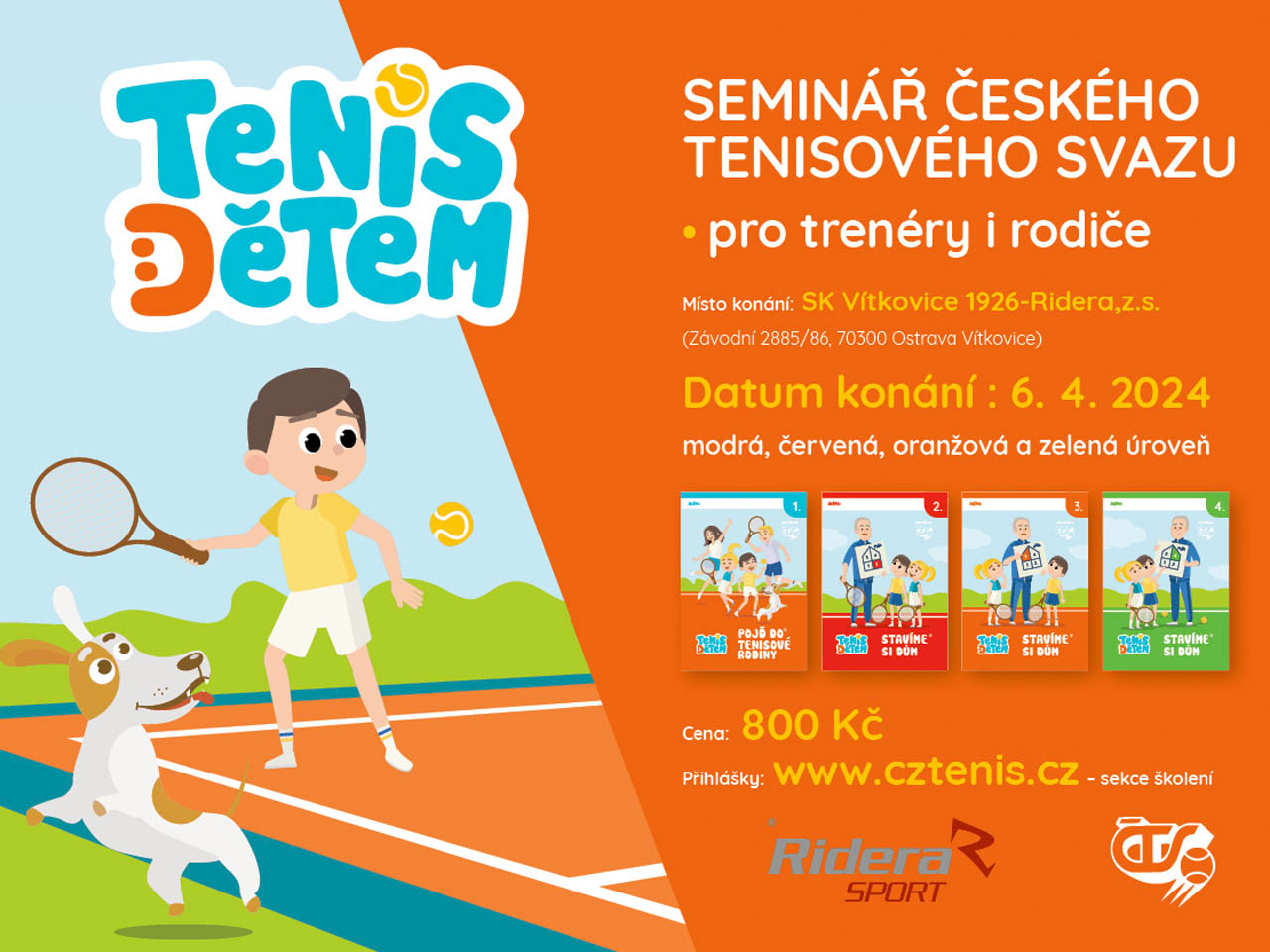 Seminář Tenis Dětem (Ostrava) SmTS ve spolupráci s ČTS pořádá v termínu 6.4.2024 celodenní seminář Tenis Dětem pro trenéry a rodiče v areálu Ridera Sport v Ostravě-Vítkovicích.