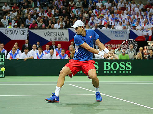 Skvělý Berdych srovnal finále Davis Cupu na 1:116.11.2012 Tomáš Berdych zdolal v obrovské pětisetové bitvě Nicolase Almagra poměrem 6:3, 3:6, 6:3, 6:7(4), 6:3 a srovnal tak po téměř čtyřech hodinách stav finálového utkání se Španělskem na 1:1. Tomáš zvýšil vzájemnou bilanci s Almagrem na 9:3 a zařídil tak pro Českou republiku nadějnou výchozí pozici před sobotní čtyřhrou. Tomáš Berdych |