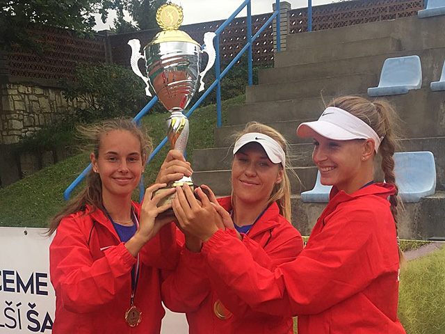 Český tým dívek do 18-ti let ve složení Tereza Procházková, Aneta Kladivová a Martina Kudelová skončil na Mistrovství Evropy družstev na třetí místě. Češky v prním kole porazily Velkou Británii 3:0, v semiifnále ale nestačily na Rusky 1:2. V utkání o bronz české trio porazilo celek Běloruska 2:1. Výsledky. 09.08.2017 |