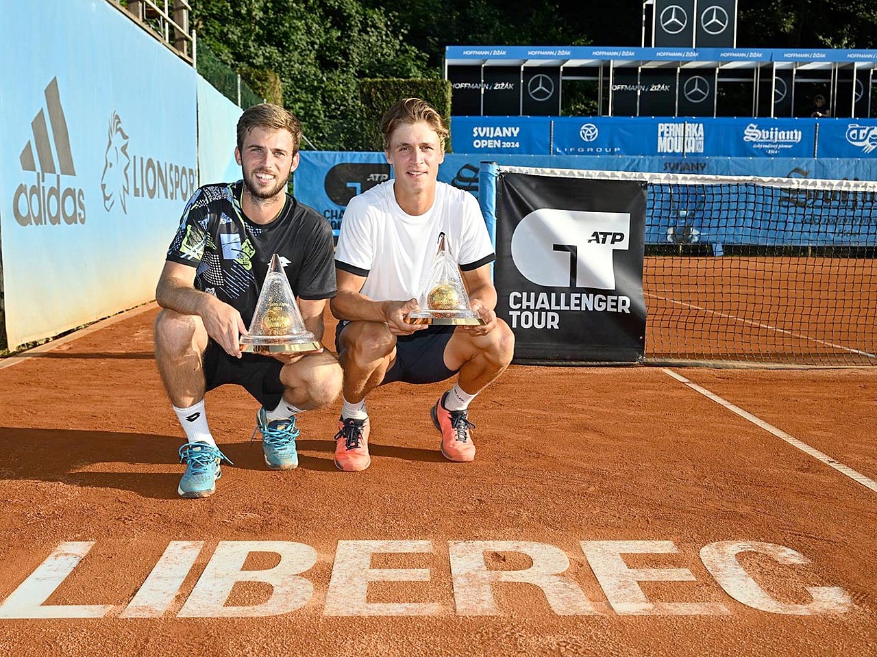 Svijany Open 2024: Titul ve čtyřhře vyhráli Vrbenský s Forejtkem Vítězi libereckého ATP challengeru mužů Svijany Open 2024 se stali Michael Vrbenský a Jonáš Forejtek. Ve finále porazili slovenský pár Miloš Karol/Tomáš Lánik 7:5, 6:7(5), 10:4. Vrbenský s Forejtkem čelili za celý zápas na svém podání pouze dvěma brejkbolům a soupeřům se podařilo prolomit jejich podání pouze jednou. Do finále dvouhry se probojovali nejvýše nasazený Hugo Dellien (1993, ATP 140) a Elmer Moeller (2003, ATP 283). Finále začíná v neděli od 12:30 hod.