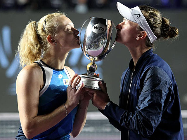 Turnaj mistryň: Snový závěr roku! Krejčíková se Siniakovou triumfovaly ve čtyřhře Poslední hrací den Turnaje mistryň v mexické Guadalajaře přinesl Barboře Krejčíkové a Kateřině Siniakové sladkou tečku za sezónou. České tenistky porazily ve finále deblového turnaje belgicko-tchajwanské duo Elise Mertensová, Su-wej Sie 6:3, 6:4 a získaly pátou letošní trofej. Od půl třetí přijde na řadu singlové finále mezi Španělkou Garbiňe Muguruzaovou a Estonkou Anett Kontaveitovou.